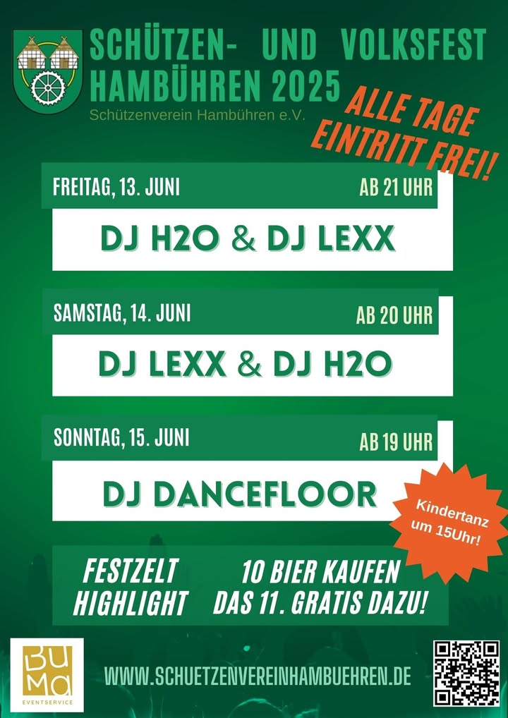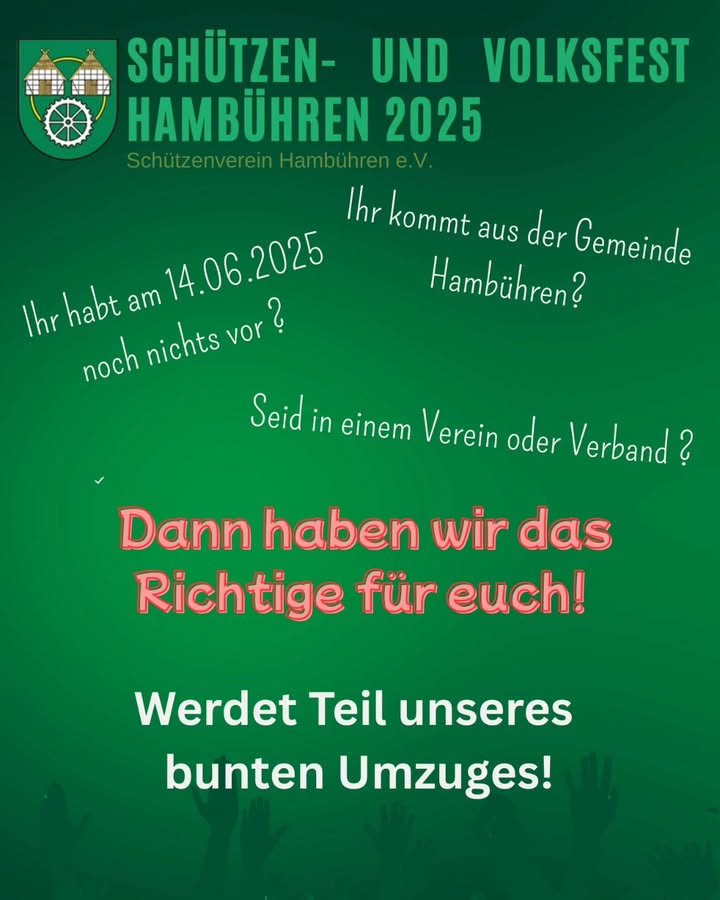 Vom 13. bis 15. Juni veranstaltet der Schützenverein Hambühren das Schützen- und Volksfest 2025. In diesem Jahr wird ein neuer Jubiläumskönig ermittelt. Zum „Bunten Umzug“ durch die Gemeinde am Samstag...